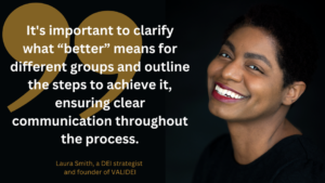 Another common misstep is a heavy focus on diversity without adequately addressing equity and inclusion. As Laura explains, “Diversity involves the different kinds of people within an organisation; equity concerns fairness in structures, support, and compensation; and inclusion pertains to people’s experiences. Shifting our focus to equity and inclusion can help retain the diversity that companies desire.”