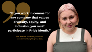 “If you work in comms for any company that values diversity, equity, and inclusion (DEI), you must participate in Pride Month. The more visibility the month gets, the more it benefits LGBTQI+ activism over the coming year.”